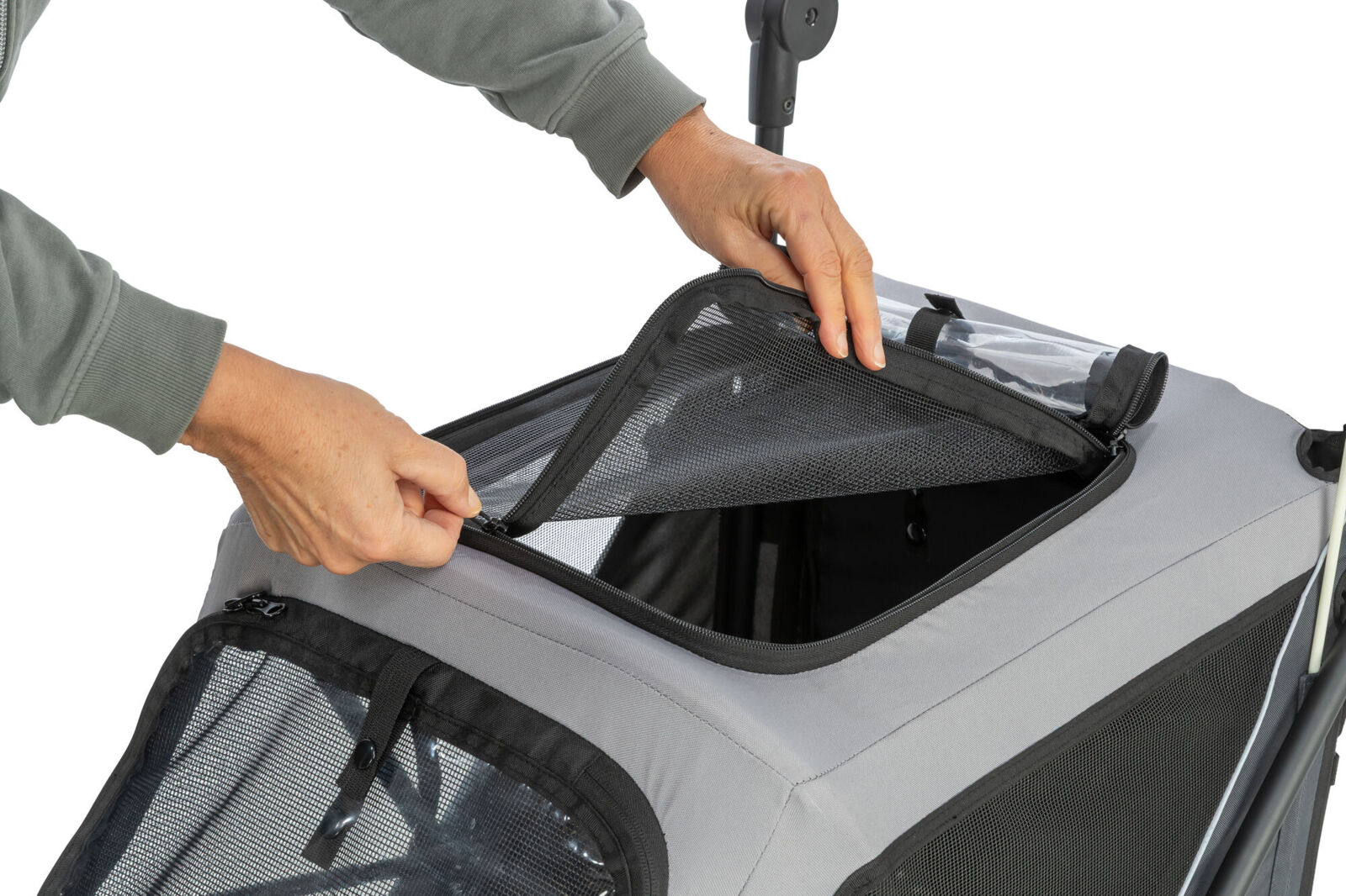 • Bovenste en voorste gaas-inzetstuk met regenhoes afdekbaar